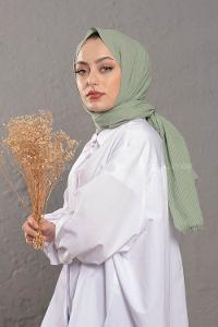 Lamelif Bohem Çiçek Desen Soft Şal Vizon Yeşil