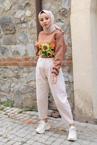 Modalamelif Sunflower Baskılı Sweatshirt Sütlü Kahve