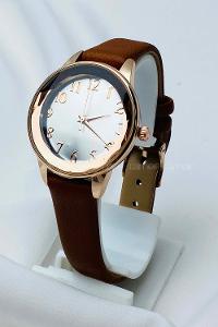 Modalamelif Tarçın Deri Kordon Kristal Cam Saat