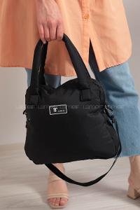 Lamelif Kabartmalı Puf Kumaş Çanta Siyah