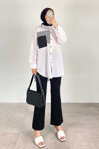 Lamelif Müslin Tesettür Gömlek Beyaz
