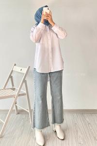 Modalamelif Tek Cep Detaylı Boyfriend Gömlek Beyaz