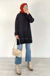 Lamelif Omuz Vatka Detaylı Tesettür Gömlek Siyah