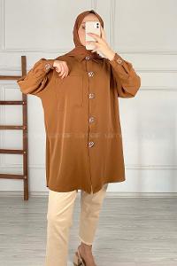 Lamelif Kol Tünel İp Detaylı Gömlek Acı Kahve