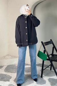 Lamelif Süet Düğmeli Mont Siyah