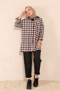Modalamelif Tek Cepli Ekose Gömlek Ekru Mor