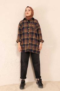 Modalamelif Tek Cepli Ekose Gömlek Hardal Kırmızı