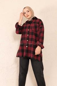 Lamelif Kraşlı Gömlek Bordo