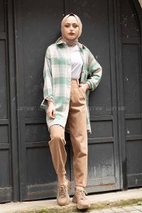 Modalamelif Tek Cepli Ekose Oduncu Gömle Mint Vizonrengi