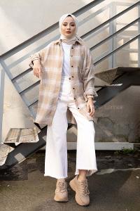 Modalamelif Tek Cepli Ekose Oduncu Gömlek Kum Beji