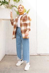 Modalamelif Tek Cepli Kapşonlu Gömlek Ekru Kiremit