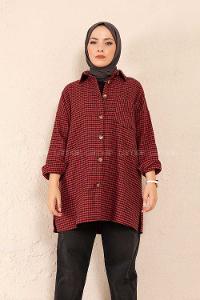 Lamelif Kraşlı Gömlek Bordo