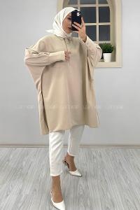 Lamelif Kol Bağlama Detaylı Oversize Gömlek Bej