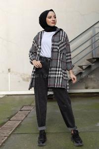 Lamelif Omuz Vatka Detaylı Tesettür Gömlek Acı Kahve