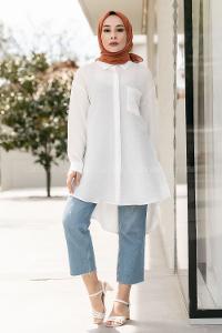 Lamelif Manşeti Biyeli Tunik Beyaz