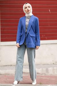 Lamelif Dekoratif Cep Detaylı Tesettür Ceket Lacivert