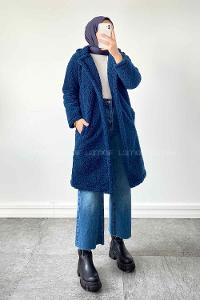 Modalamelif Tek Düğmeli Peluş Kaban Petrol Mavisi
