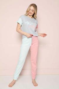 Modalamelif The Good Yazılı Garnili Şhort Pijama Takımı Turkuaz-Pudra