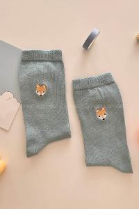 Modalamelif Tilki Nakış İşlemeli Soket Çorap Bebe Mavi