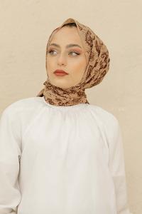Modalamelif Toprak Rengi Motif Baskılı Pamuk Vual Şal