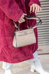 Lamelif Deri Görünümlü Omuz Çantası Kadın Vizonrengi