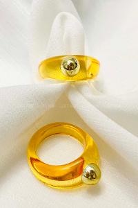 Modalamelif Turuncu Top Detaylı Akrilik Yüzük