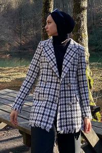 Modalamelif Tüvit Çeket Püskül Detaylı Beyaz-Siyah