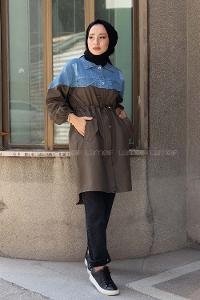 Lamelif Bel Lastikli Bağlama Detaylı Ceket Haki