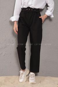 Modalamelif Üstten Cepli Pileli Kemerli Pantolon Siyah