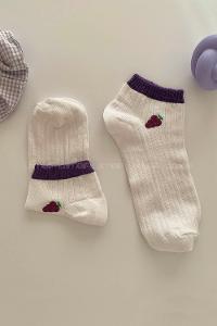 kiraz desenli, beyaz üstüne kırmızı tek şerit bilek üstü çorap