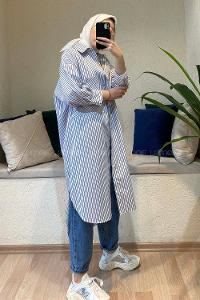 Modalamelif Uzun Çizgili Tunik Açık Mavi