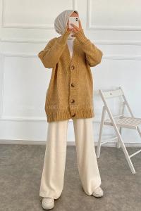 Lamelif Düğme Detaylı Hırka Bej