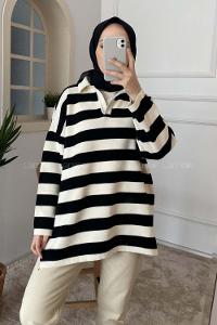 Lamelif Dilvin Bisiklet Yaka Kol Ortası Droplu Kazak Siyah