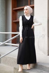 Lamelif Taş Detaylı Tesettür Elbise Siyah