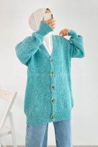 Modalamelif V Yaka Önü Boydan Düğmeli Triko Hırka Çağla Yeşili