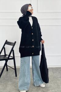 Modalamelif V Yaka Önü Boydan Düğmeli Triko Hırka Siyah