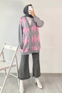 Lamelif Yumoş Havlu Desen Hırka Pembe