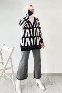 Modalamelif V Yaka Önü Düğmeli Desenli Triko Hırka Siyah