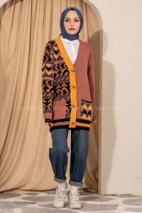 Lamelif Zebra Desen Hırka Kahverengi
