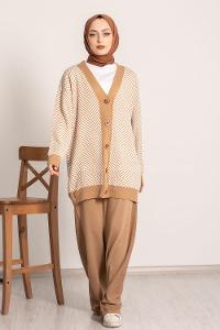 Lamelif Yumoş Havlu Desen Hırka Krem