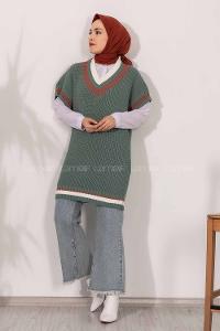 Modalamelif V Yaka Renk Garnili Triko Süveter Çağla Yeşili