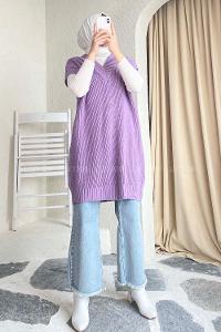 Lamelif Dilvin Bisiklet Yaka Kol Ortası Droplu Kazak Bordo
