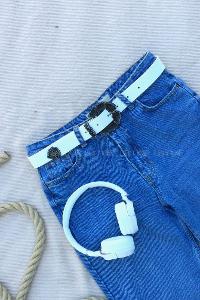 Modalamelif Vıntage Yaprak Tokalı Kemer Beyaz