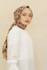 Lamelif Retro Desen Bambu Şal Acı Kahve