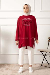 Lamelif İki iplikli Arma Detaylı Sweat Tunik Bordo