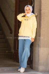 Modalamelif Wonderfull Kapşonlu Bayan Tunik Muz Kabuğu