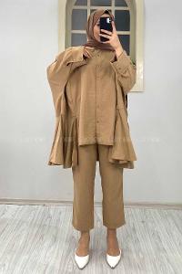 Lamelif Balance Armalı Çımalı İkili Tesettür Takım Camel