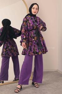 Modalamelif ya_rasa Kol Lastikli İkili Takım Mor