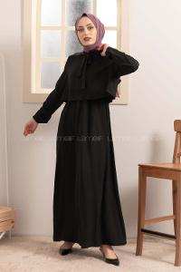 Lamelif Balon Kol Katlı Tesettür Elbise Siyah