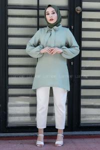 Modalamelif Yaka Bağlamalı Ayrobin Tunik Çağla